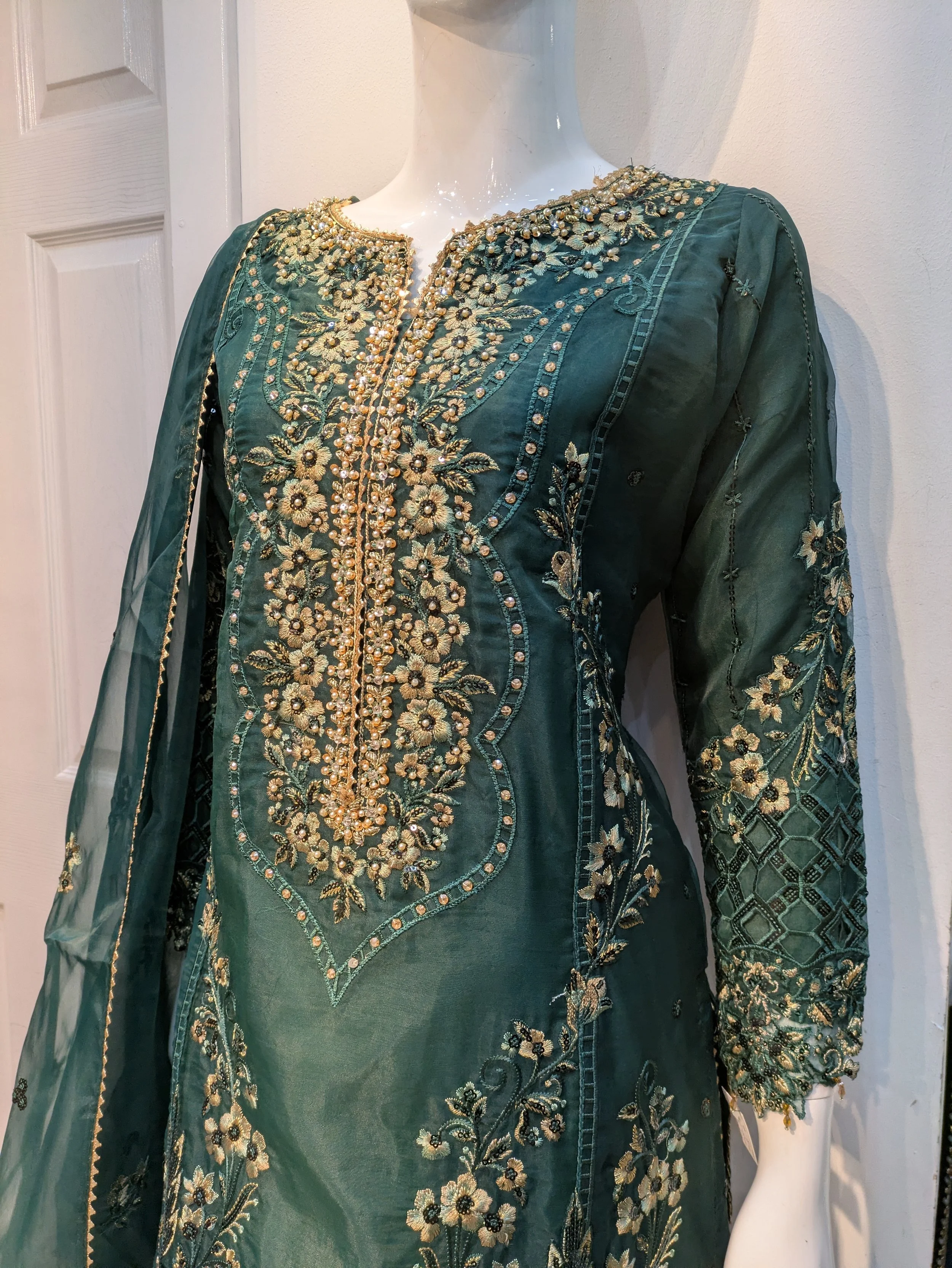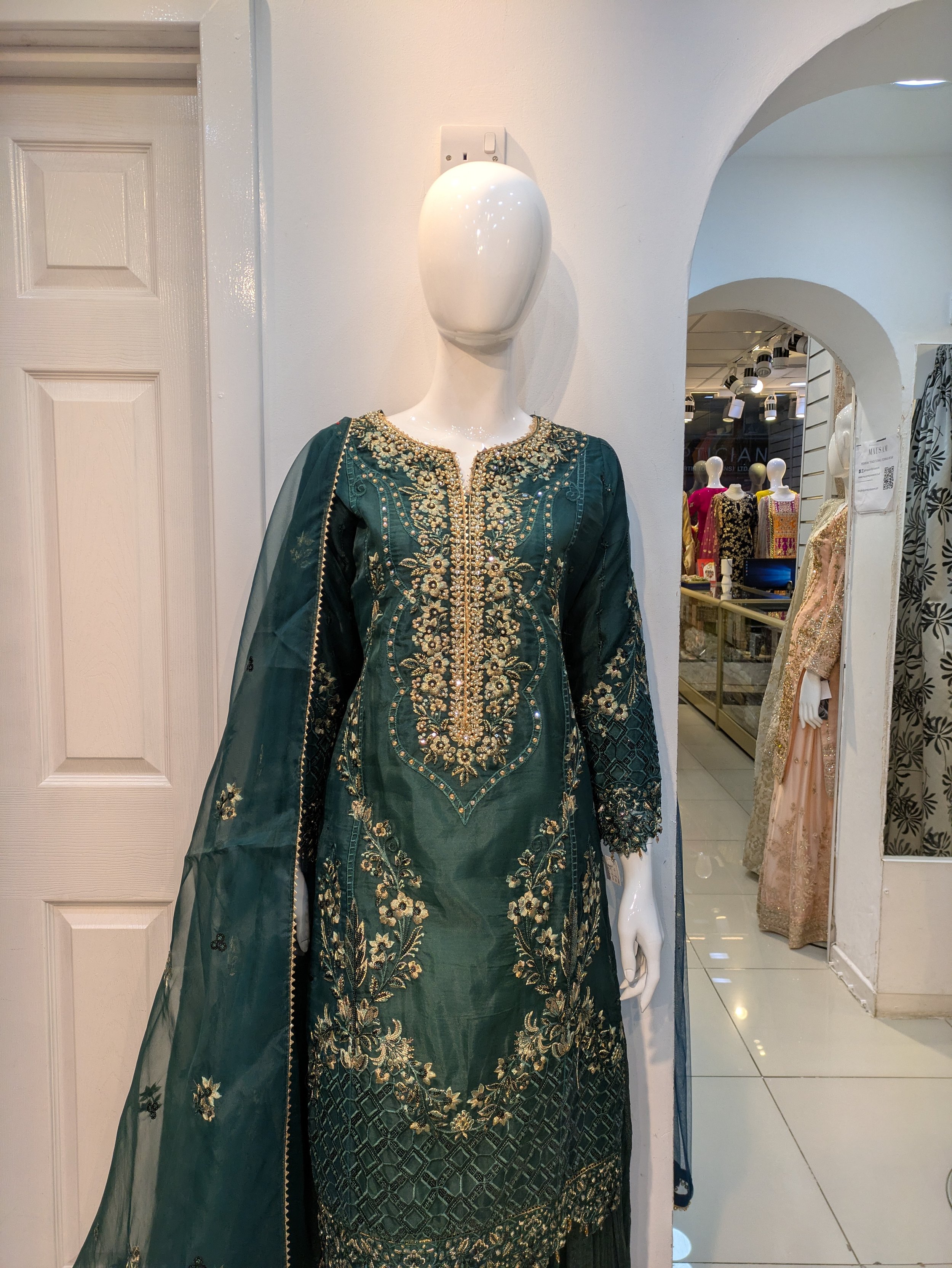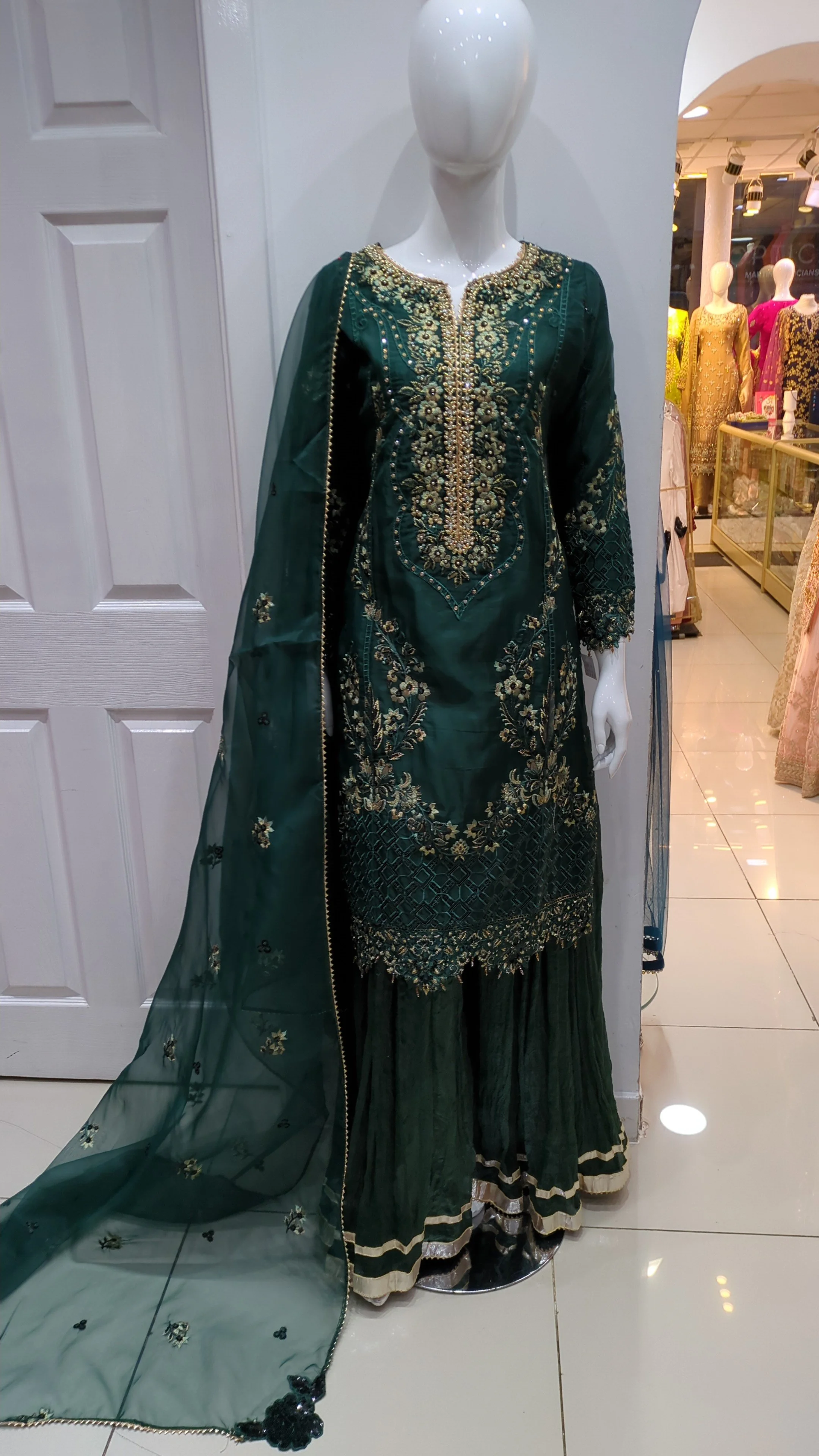Formal Wear › 9669 Image 1 of 6 Image 2 of 6 Image 3 of 6 Image 4 of 6 Image 5 of 6 Image 6 of 6 9669 £89.00 Long shirt with sharara orgaza dubbata Hand work gotta with morori work Size: Small Medium Large Add To Cart Added! Long shirt with sharara orgaza dubbata Hand work gotta with morori work