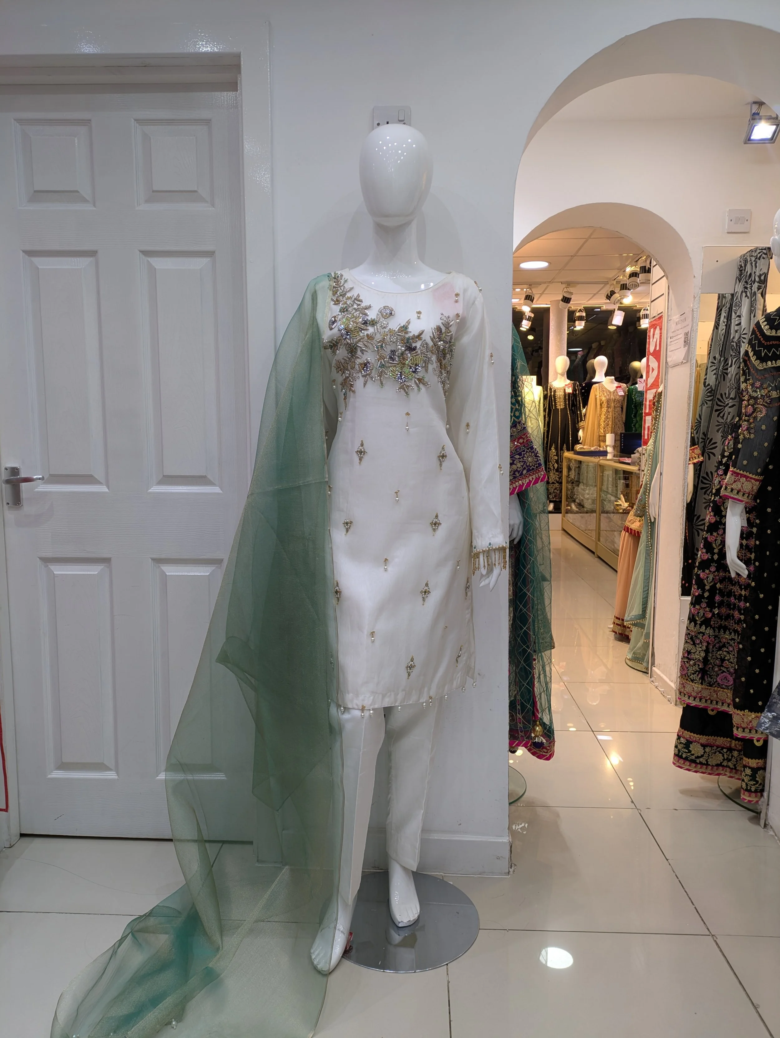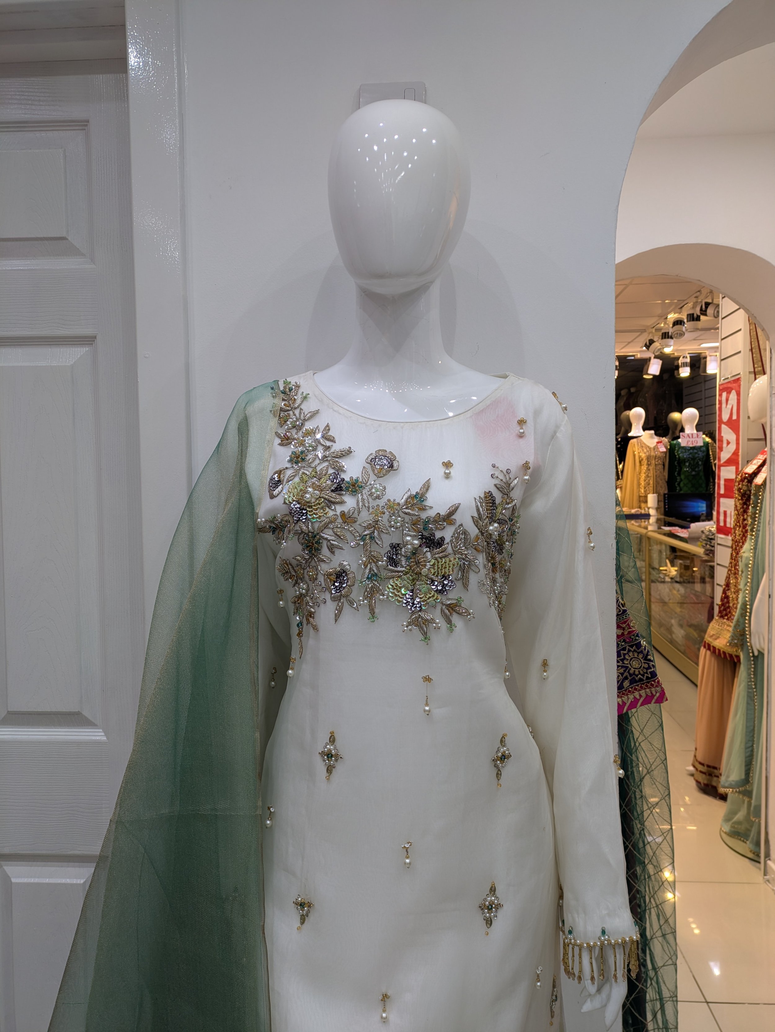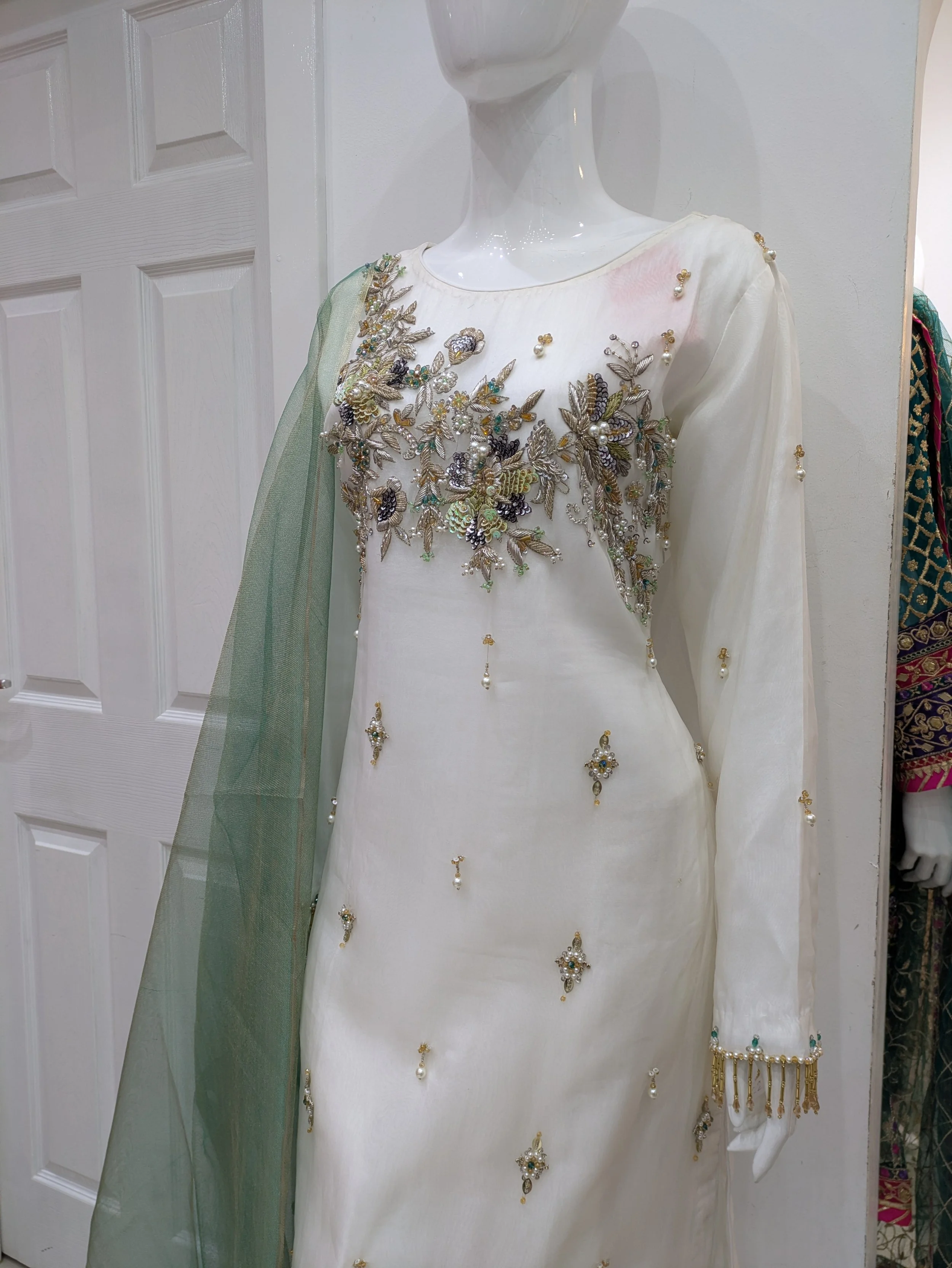 Formal Wear › AC3800 Image 1 of 5 Image 2 of 5 Image 3 of 5 Image 4 of 5 Image 5 of 5 AC3800 £89.00 White shirt and trousers fabric Organza Raw slikDupatta organza Quantity: Add To Cart Added! White shirt and trousers fabric Organza Raw slikDupatta organza