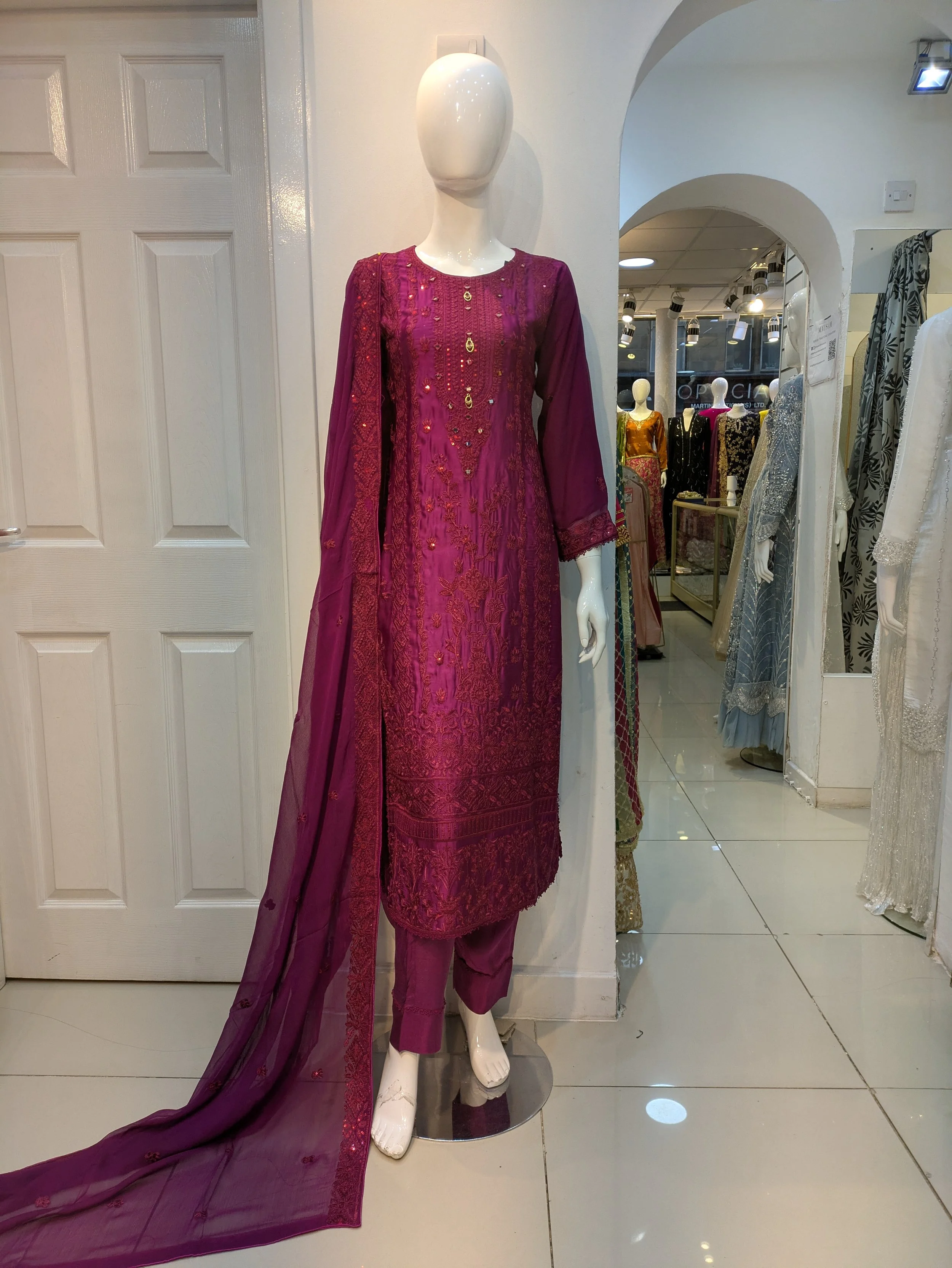Formal Wear › 1013 Image 1 of 5 Image 2 of 5 Image 3 of 5 Image 4 of 5 Image 5 of 5 1013 £59.00 Long shirt with trousers shirt in silk dupatta in chiffon Add To Cart Added! Long shirt with trousers shirt in silk dupatta in chiffon