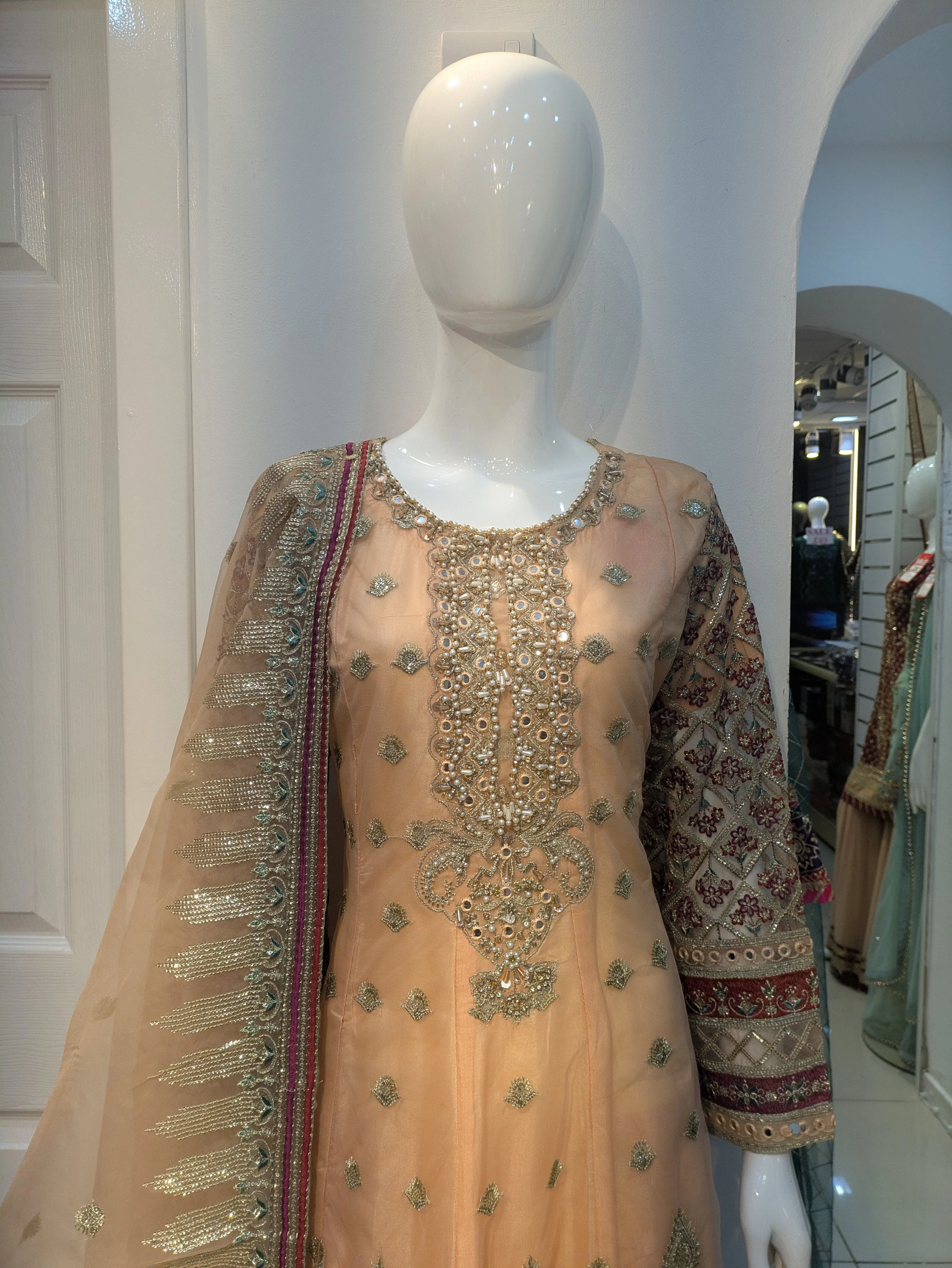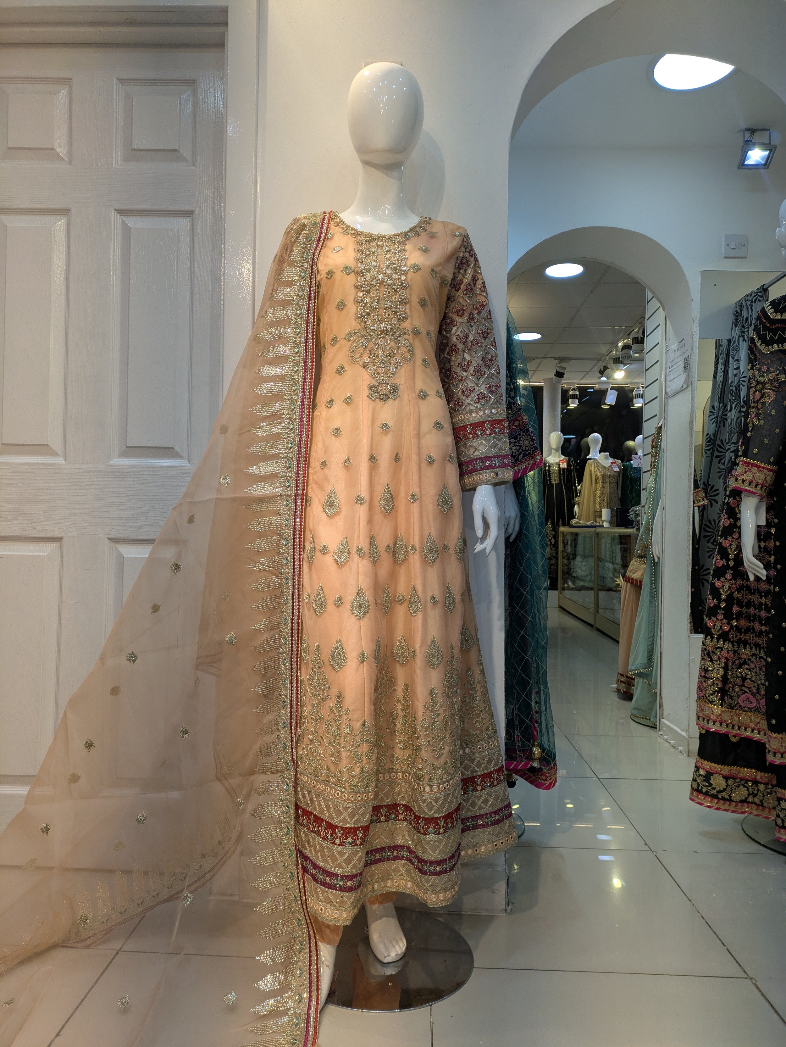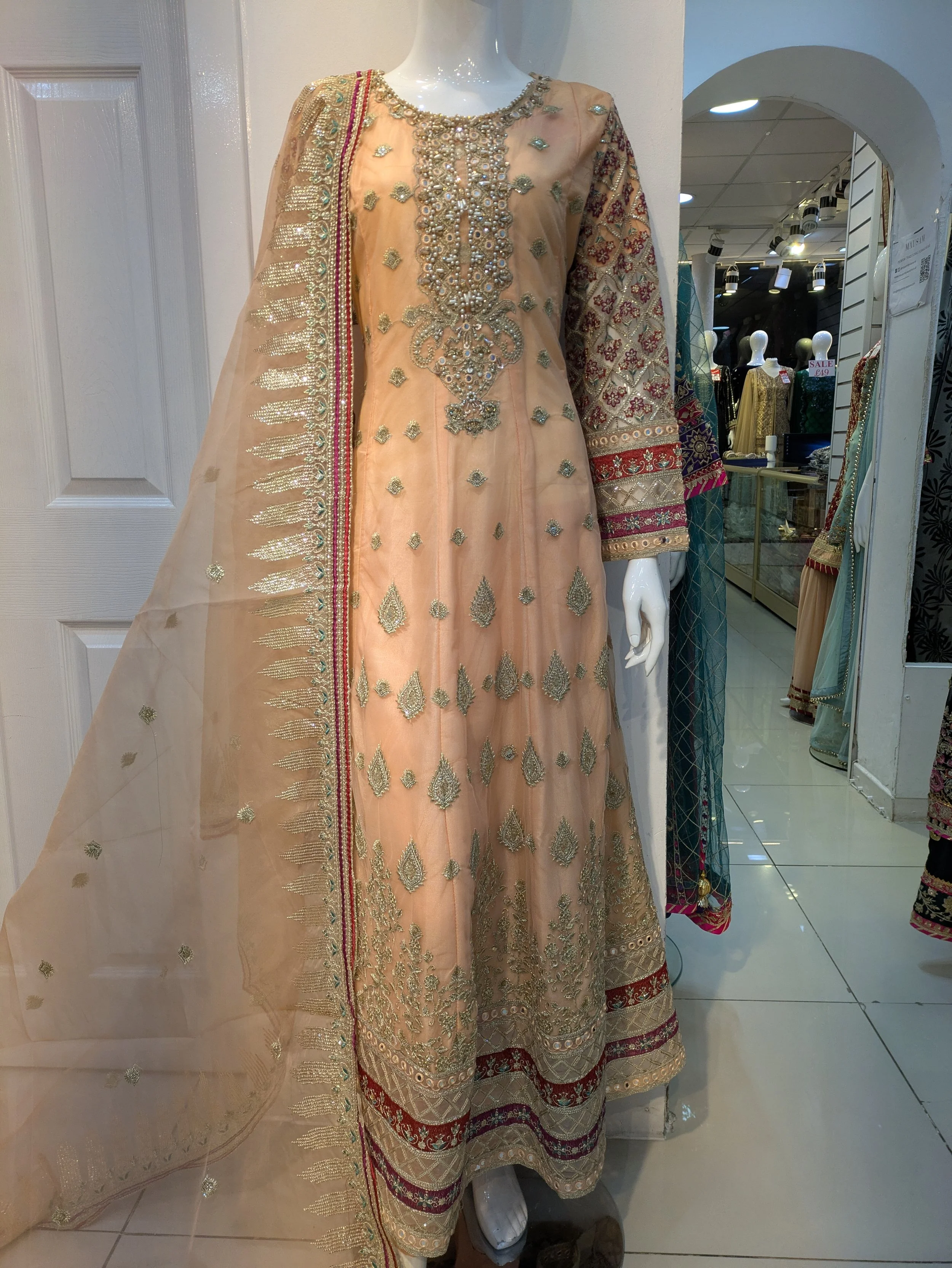 Formal Wear › AC 990 Image 1 of 5 Image 2 of 5 Image 3 of 5 Image 4 of 5 Image 5 of 5 AC 990 Sale Price: £35.00 Original Price: £69.00 Long dress net fabric front panel hand work Dupatta net fabric Size: Medium Large Quantity: Add To Cart Added! Long dress net fabric front panel hand work Dupatta net fabric