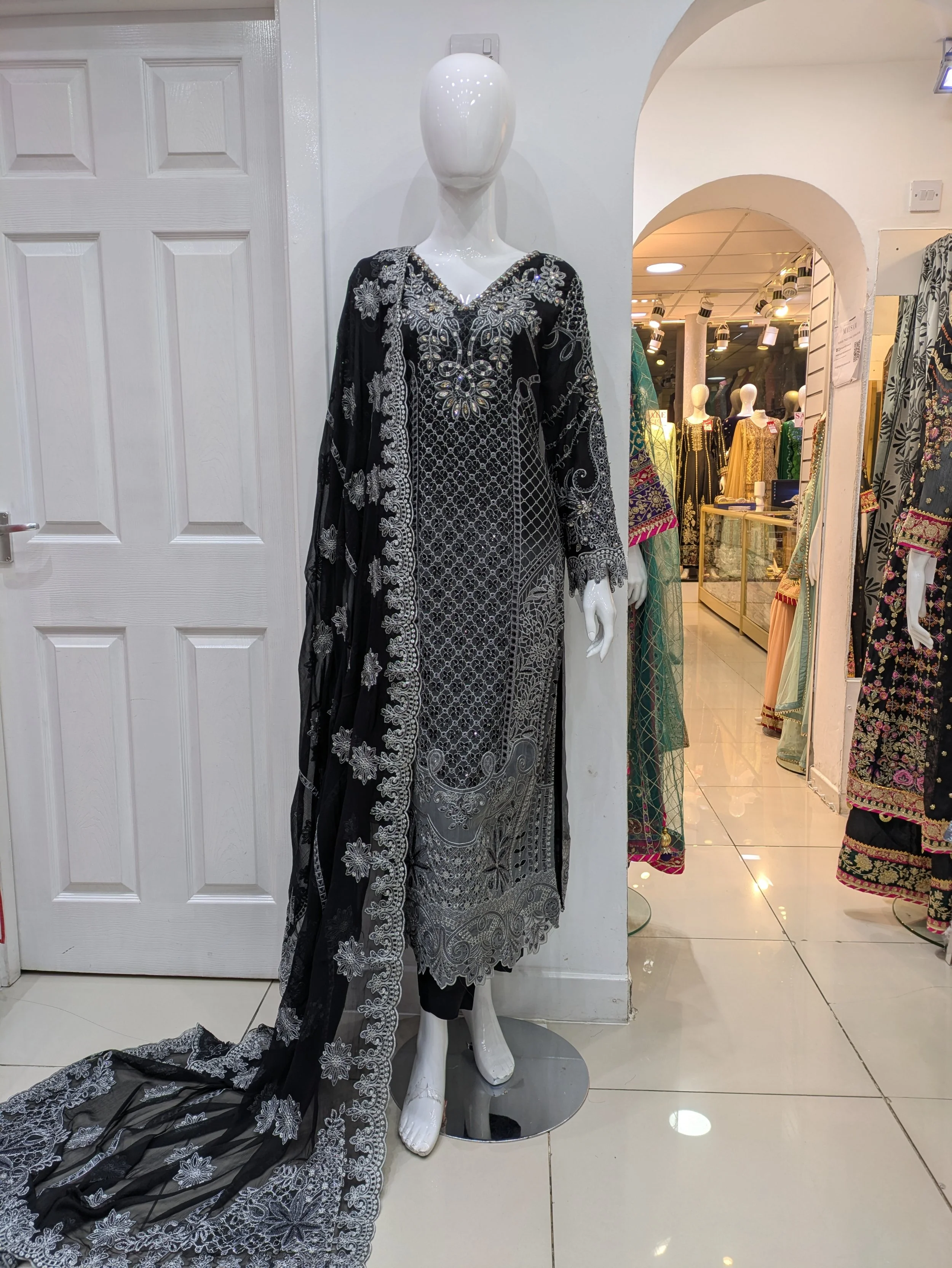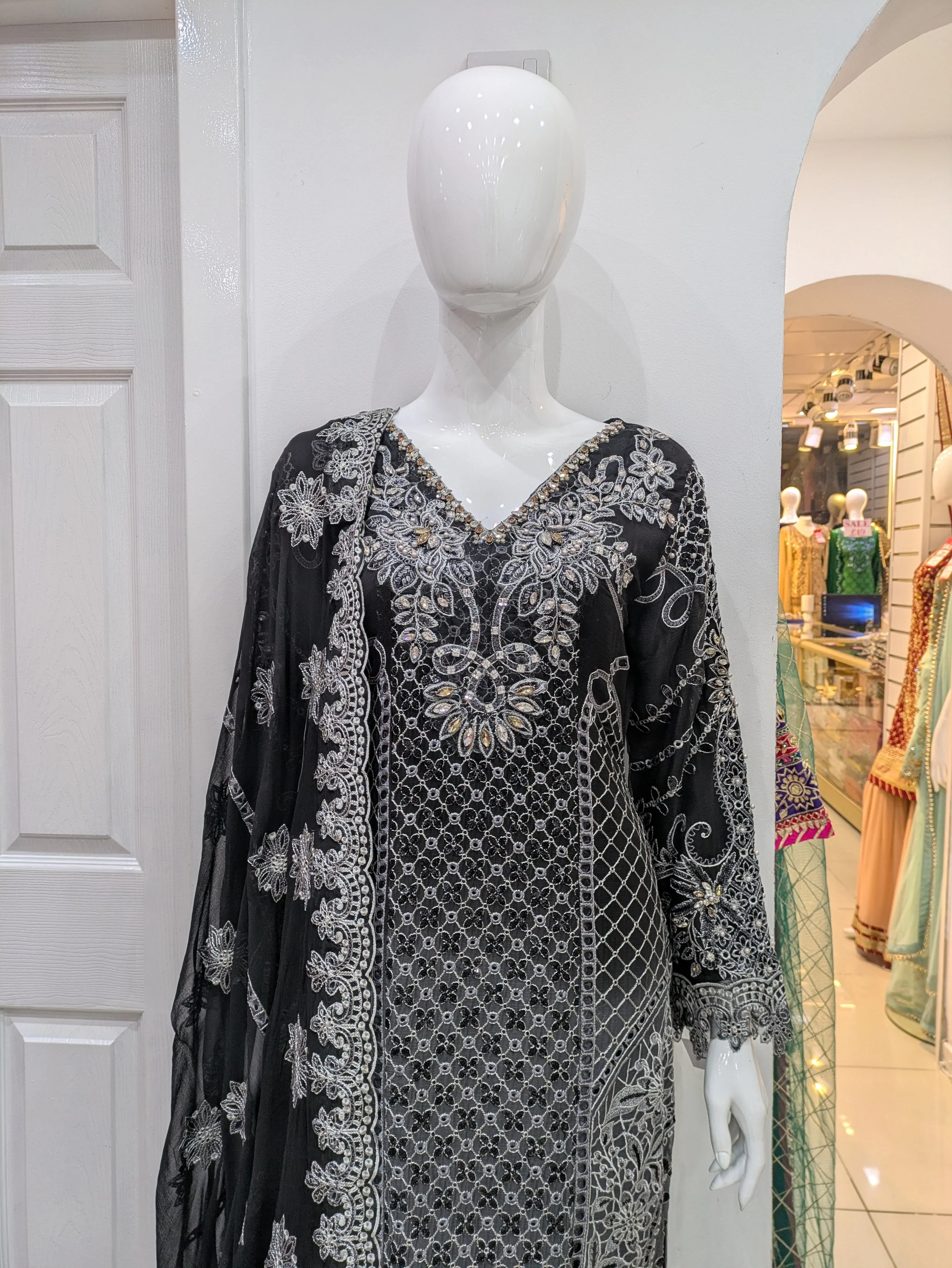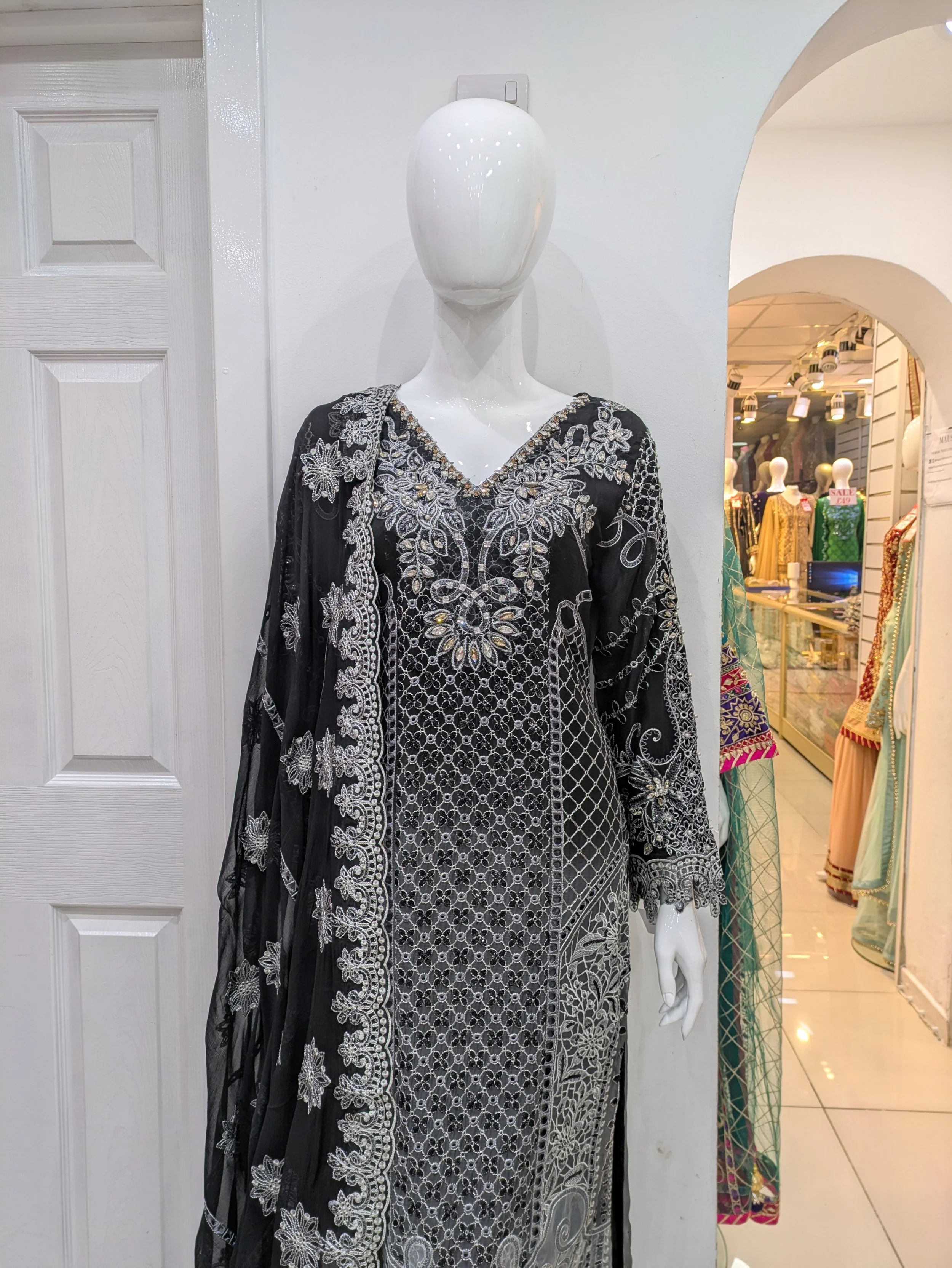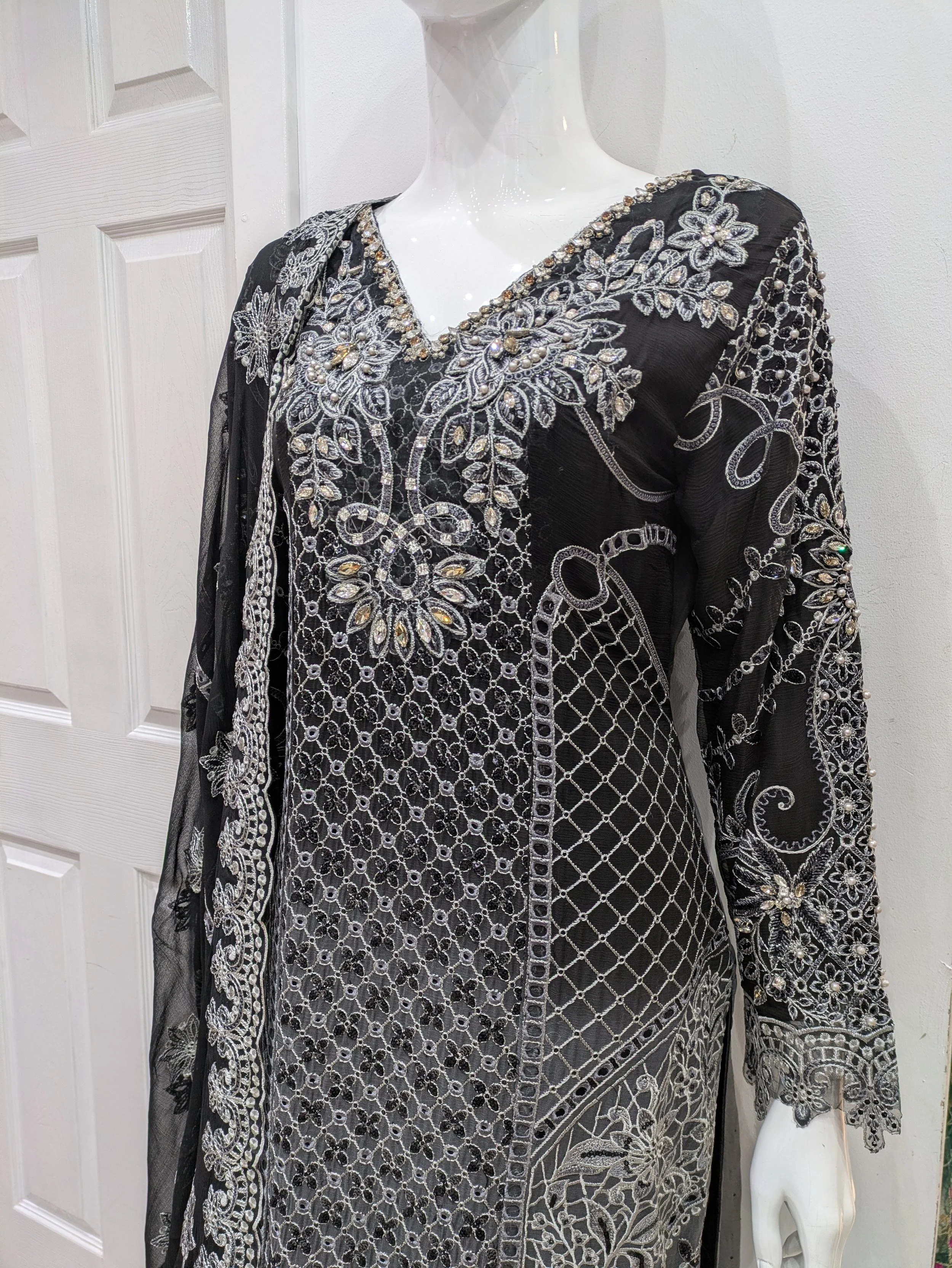 Shrit fabric chiffon embroidered organza neck with hand embroidery sleeves with hand embroidery
